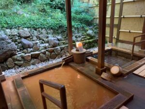 部屋に温泉風呂付き、貸し切り露天風呂も沢山あって、潔癖症の娘でも喜んでもらえる旅館です。
