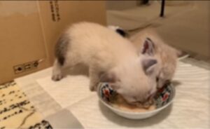 3匹とも娘がスプーンから離乳食を始め、お皿から自力で食べる事ができるようになってました。