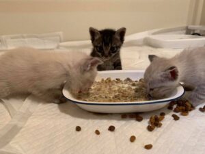 白いメス2匹はちゃんと食べますが、黒オスはミルクばっかりチャパチャパしております。