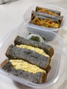 今日はごまパン焼いて、焼きそばパンにタマゴサンド。