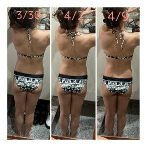 あんなに分厚かった体幹が薄くなったし、お尻もキュッと、太ももの隙間も戻ってきました。