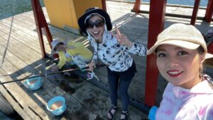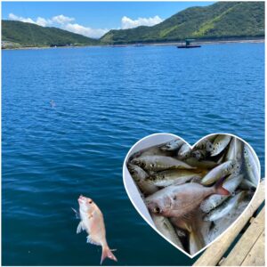 アジ、サバ、タイ、サヨリ、フグが釣れましたー。