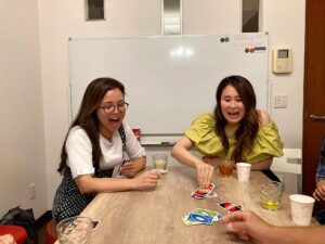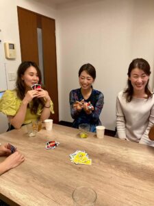 沢山食べた後は、ジェンガやUNOでガチ対決。